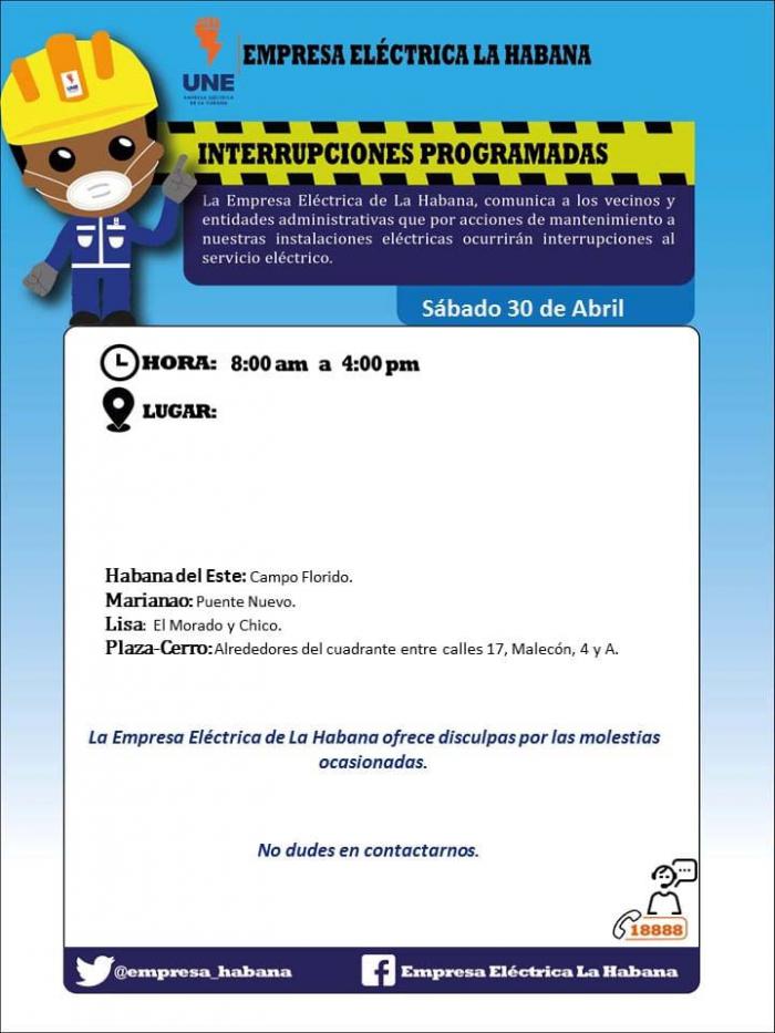 Dichas interrupciones tendrán lugar desde las 8 de la mañana hasta las 4 de la tarde, por acciones de mantenimiento