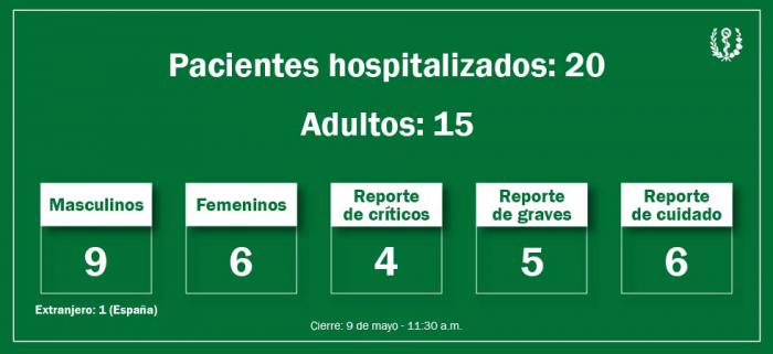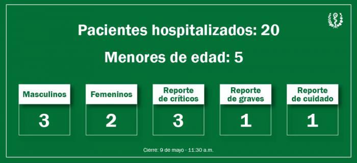 Se encuentran hospitalizados los 20 pacientes, en seis instituciones de Salud de la capital.