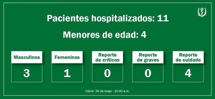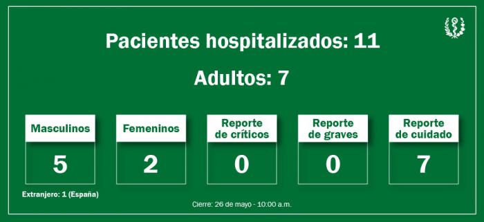 Se encuentran hospitalizados los 11 pacientes, en cinco instituciones de Salud de la capital. Hasta el momento se reportan 46 fallecidos.