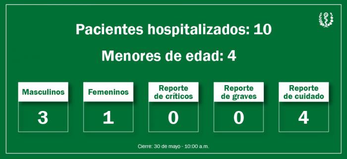 Se encuentran hospitalizados los 10 pacientes, en cuatro instituciones de Salud de la capital. Hasta el momento se reportan 46 fallecidos.