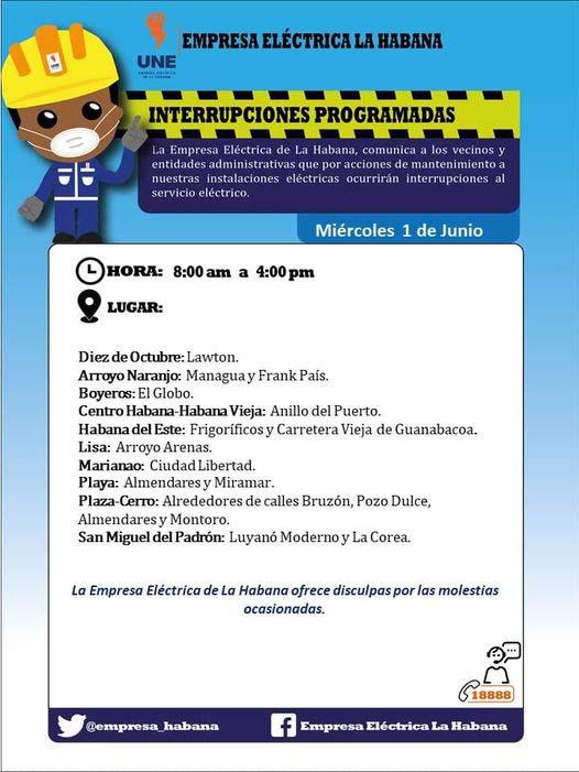 La Empresa Eléctrica de La Habana ofrece disculpas por las molestias ocasionadas