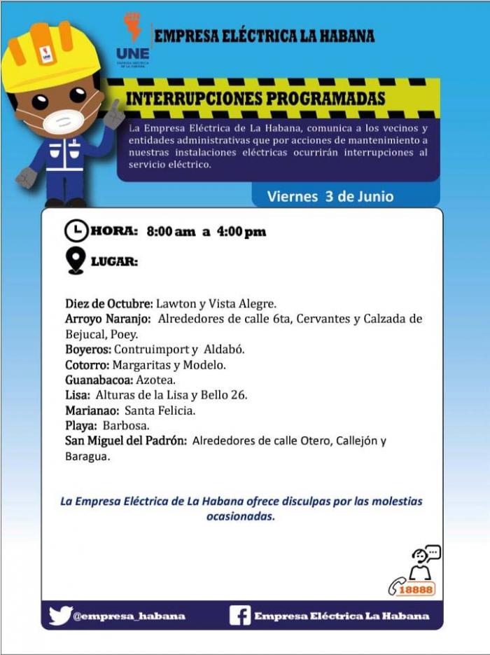 También está apagado Versalles y sin embargo se planteó Alturas de la Lisa. No parece sea serio el informe que aparece en el periódico o es una falta de respeto de la Empresa Eléctrica. ¿Qué sucedió? Gracias