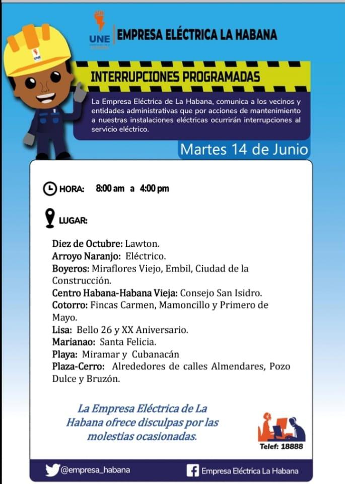 Calle 70 entre 9 y 11 playa Sin electricidad desde ayer a las 2 pm Y se ha reportado pero no se han dado por enterados
