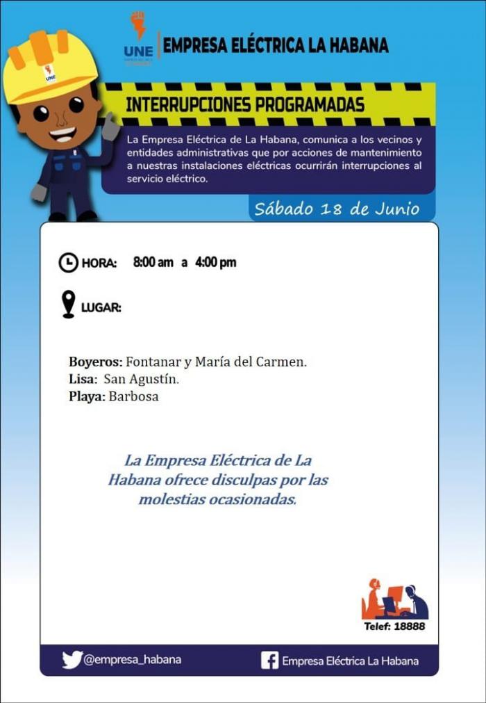 Algunos barrios de los municipios de Boyeros, La Lisa y Playa tendrán interrupción del servicio eléctrico por acciones de mantenimiento