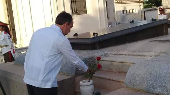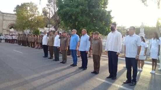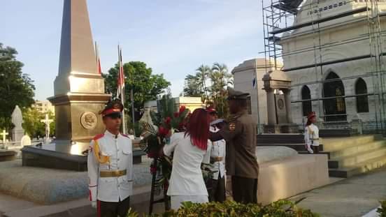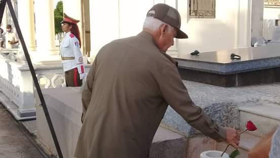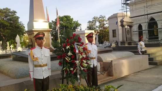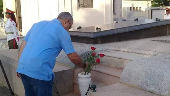 El Héroe de la República de Cuba General de Cuerpo de Ejército Joaquín Quinta Solá, viceministro de las Fuerzas Armadas Revolucionarias (FAR), y Rogelio Polanco Fuentes, miembro del Secretariado del Comité Central del Partido Comunista de Cuba y Jefe de su Departamento Ideológico, presidieron el homenaje que se inició con la colocación de una ofrenda floral a nombre del pueblo de Cuba, en el Mausoleo donde reposan los restos del Generalísimo, en la Necrópolis de Colón.