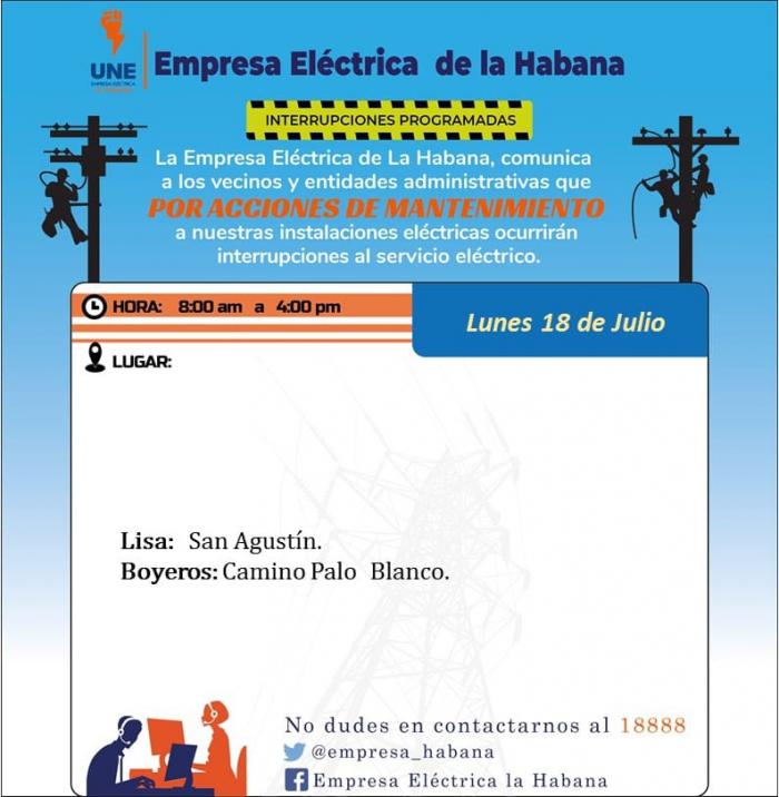 Fueron programados La Lisa y Boyeros, pero 10 de Octubre, Consejo Popular Vista Alegre, parece que no tuvo tiempo de informar a Tribuna, estamos sin fluido hasta las 5 pm. Eso, aunque la palabra no existe en español, se llama " desinformacion".