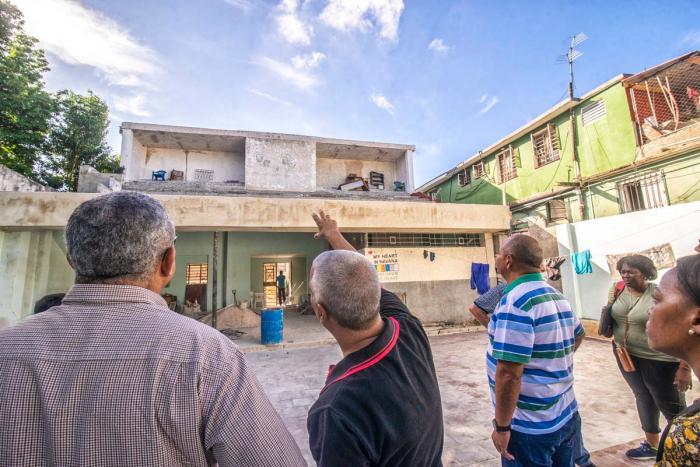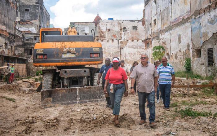 También en La Habana Vieja, se recorrieron los dos emplazamientos donde se construyen las viviendas para familias damnificadas por la explosión del hotel Saratoga, en mayo pasado. En la calle Vives 438, entre Carmen y Figuras, se explicó, se levantan ocho ap