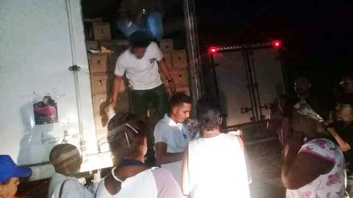 La carga solidaria contenía cinco toneladas de pollo, una tonelada de picadillo de chorizo Bravo, 1 200 litros de aceite comestible, 630 litros de pintura Civil, más de 100 cajas de arroz, más de 50 cajas de frijoles con 24 paquetes cada una, 100 cajas de leche en polvo con 12 paquetes cada uno. Además, chocolate, camas Doler, sillas de ruedas, así como insumos médicos.