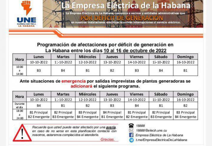 La Empresa Eléctrica de La Habana informa la programación de afectaciones en la capital durante la próxima semana