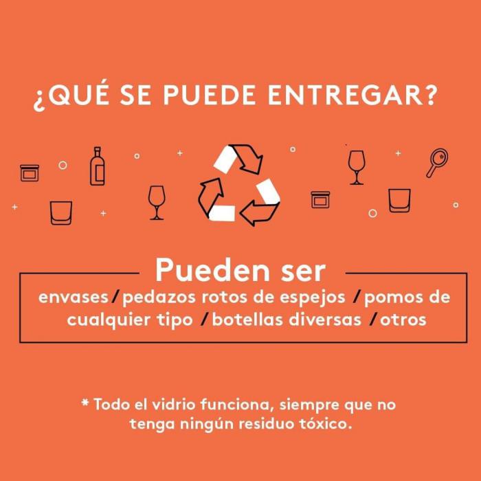 Cualquier pomo y botella de vidrio, pedazos de espejos y cristal, grande o pequeño, es bienvenido a una iniciativa de reciclaje, a propósito del Año Internacional del Vidrio.