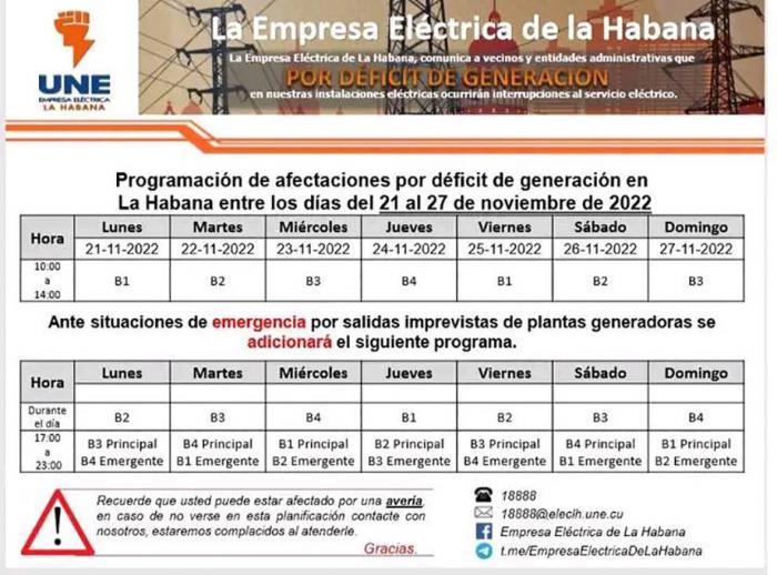 Están poniendo en el cronograma de las afectaciones los días que no toca. Ejemplo: la semana pasada anunciaron el corto el jueves y tocaba el miércoles. Esta semana toca el corto el jueves y lo tienen puesto el miércoles, ese día no nos quitan la corriente, la quitan como toca de verdad porque son un día y tres no. Por favor arreglen ese error. Soy de Cojímar, bloque 4. Gracias.