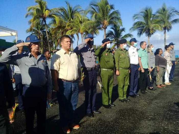 Asistieron Ritmar Rodríguez Gutiérrez, primer secretario del Partido en el municipio capitalino de La Habana del Este, y el Coronel Francisco Jimen Jiménez, jefe de la Policía Nacional Revolucionaria (PNR) en La Habana y familiares de los mártires.