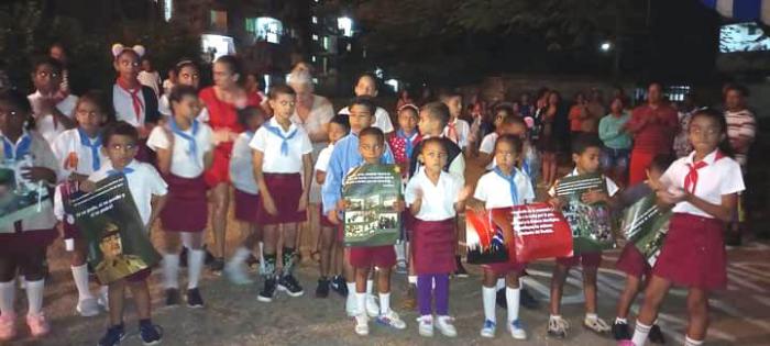 La alegría de los pioneros matizó la bienvenida. Versos declamados por los infantes y adultos evocaron al Comandante en Jefe Fidel Castro Ruz.