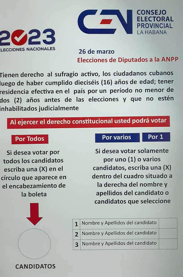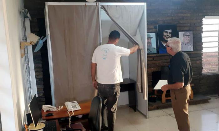 El presidente de la comisión electoral de circunscripción (CEC), Armando Angarica Gómez, supervisaba la capacitación de los miembros de las mesas, la iluminación e higiene del local, la disponibilidad de los medios de comunicación y de transporte, las urnas, los ocho murales donde se muestra el listado de electores y las biografías de los candidatos, así como la presencia de los símbolos patrios.