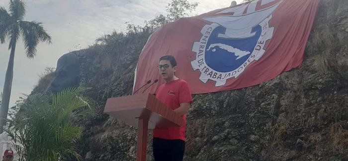 Así lo expresó en las palabras centrales del acto el Secretario General de la CTC, Alfredo Vázquez Pérez, quien reafirmó la convocatoria a una masiva jornada patriótica en todos los centros laborales bajo el lema A la Patria, manos y corazón.