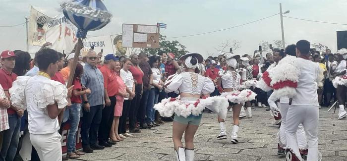 La jornada de celebración cerró con la actuación de los Guaracheros de Regla, los cuales se mezclaron con los representantes de los 15 municipios de la capital que participaron con banderas cubanas y carteles alegóricos a la fiesta del proletariado.