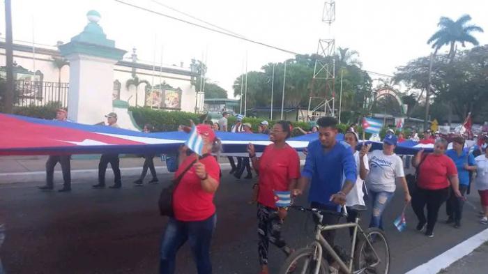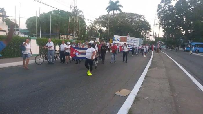 Desde la Feria Agropecuaria de Rancho Boyeros partió en marcha compacta la población hasta la Plaza Fernando Álvarez, donde se efectuó el acto político cultural.