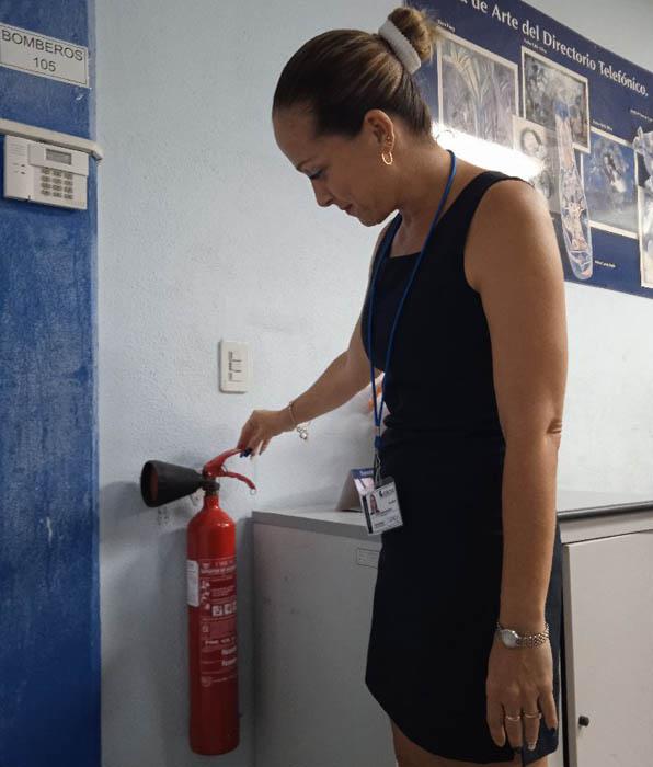 La protección contra incendios está en la mira de trabajadores y directivos del colectivo laboral de ETECSA, así lo corrobora Heidi Rodríguez Brito, técnica en Telemática y responsable de la actividad contra incendios, quien aseguró que periódicamente realiza la evaluación de identificación de riesgos en ese sentido.