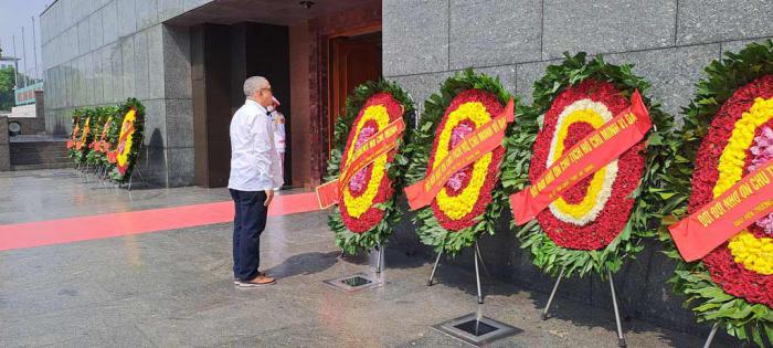 Luis Antonio Torres Iríbar, primer secretario del Partido Comunista de Cuba en La Habana, rindió este sábado 10 de junio homenaje a Ho Chi Minh, prócer de la independencia vietnamita, en el Mausoleo donde descansan sus restos mortales, en Hanoi.