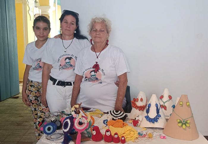 Yoany Hernández Camejo es heredera de una larga tradición familiar de tejedoras a crochet y teje desde los seis años. "Tejían mis dos bisabuelas, mi abuelita, mi mamá, que es Mery. Las arañitas de Mery somos mis tres hermanas y mi mamá y la niña que la tengo incursionando en el modelaje", dijo.