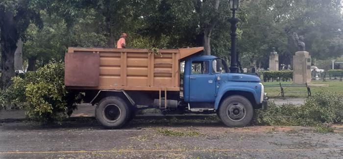 El personal de Servicios Comunales ha recolectado más de 700 metros cúbicos de desechos en los últimos dos días, y se recogió todo el follaje que cayó en la vía pública.
