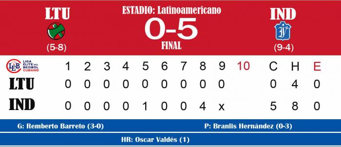 Oscar Valdés disparó un bambinazo con bases llenas, Remberto Barreto estuvo intratable y los Leones de Industriales vencieron 5-0 a los Leñadores de Las Tunas en el parque Latinoamericano, para atornillarse en la primera posición de la II Liga Élite del Beisbol Cubano.