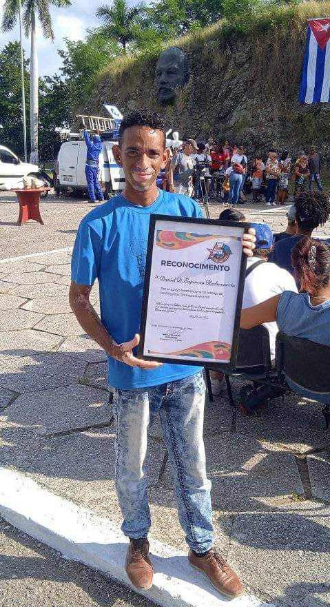 Para culminar el encuentro, se hizo una especial distinción a Daniel David Espinoza, quien hasta hace poco fuera presidente de las BTJ en La Habana, por ser ese faro que guió el trabajo del movimiento en tiempos tan complejos, enalteciendo el nombre de las juventudes cubanas en la ciencia e innovación.