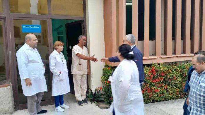 El Hospital Clínico Quirúrgico "Manuel Fajardo", el más antiguo de los que en la actualidad funciona en nuestro país, fue la primera parada; hasta allí llegaron las autoridades provinciales y fueron recibidos por la dirección y el personal del centro, quienes les presentaron un detallado informe sobre la situación de la institución, donde 15 obras han sido sometidas a reparación y se lograron recuperar edificios como el socioadministrativo, el de servicio de urgencias, la morgue y el sistema ingeniero y cubierta, entre otros.
