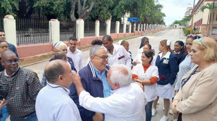 Durante el recorrido, Torres Iríbar aprovechó "para felicitarlos por lo que ha hecho la salud pública de este país; este ha sido un año heroico, lleno de situaciones complejas como se ha denunciado, sobre todo la influencia externa: el bloqueo económico, la guerra entre Ucrania y Rusia, que al ser de los principales exportadores de granos del mundo afecta la economía de todos los países y la acumulacion de los problemas nuestros. Y a pesar de ello, este heroico pueblo ha resistido heroicamente y ha apoyado su Revolución"