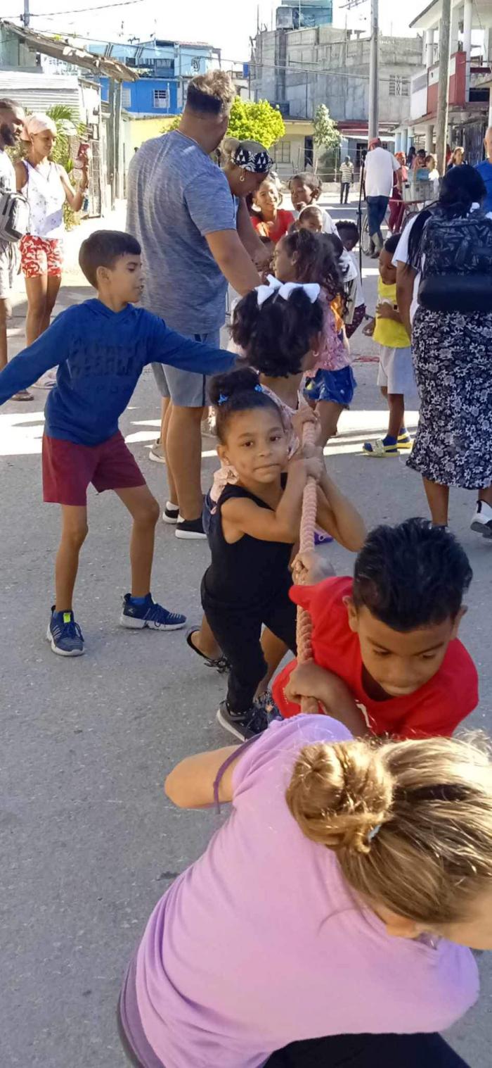Nada hay más contagioso que la risa de los niños, esa que llena el alma con una alegría sin igual y que este domingo se hizo presente, a raudales, en el reparto La Caridad, en el municipio de Cotorro. Justo frente al mercado "Cotorrón", a escasos metros de la intersección de las calles 22 y 71, tuvo lugar este 7 de abril un plan de la calle, donde desde los niños hasta los abuelos disfrutaron con las actividades que allí tuvieron lugar.