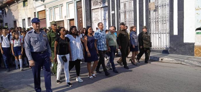 Una peregrinación encabezada por Jesús Otamendiz Campos, vicegobernador de La Habana; Yosvsni Cañete Vega, primer secretario del Partido en el Cerro; y el Primer Coronel Luis Carlos Guzmán Matos, jefe del Cuerpo de Bomberos de Cuba, se realizó en el lugar, donde fue colocada una ofrenda floral como tributo a los combatientes Iván Lugo Machado y Elías Moya Téllez, caídos en el cumplimiento del deber.
