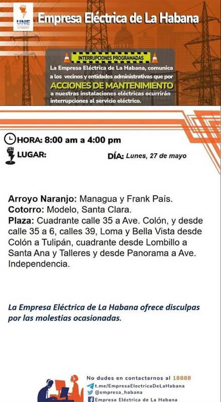 Saludos, cuáles son los bloques que conforman la Habana para los apagones? Gracias