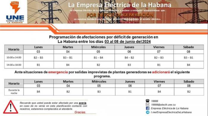 Programa de afectaciones para esta semana