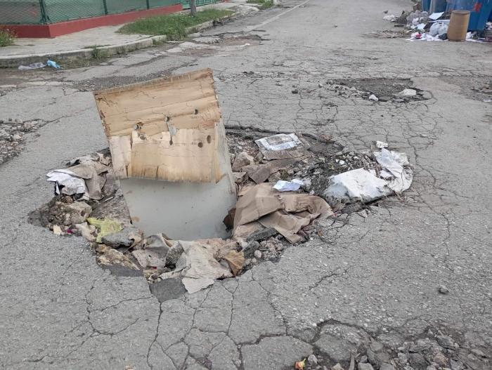 A poco menos de tres metros del mencionado hueco se ha hecho casi vitalicio un microvertedero, que ha llegado a estar varios días bloqueando la calle, ya de por sí en pésimas condiciones para el tránsito de vehículos y personas, y con la presencia de roedores que salen de un lugar a otro.