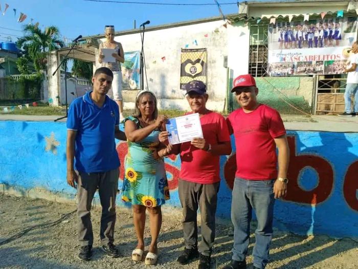 Eliades Rodríguez Martínez, coordinador provincial de los CDR en la capital, entregó el más alto reconocimiento cederista a Abel Ramos Rodríguez, director del Proyecto Comunitario, quien visiblemente emocionado agradeció la entrega del reconocimiento y agradeció el apoyo y el acompañamiento desde el barrio.