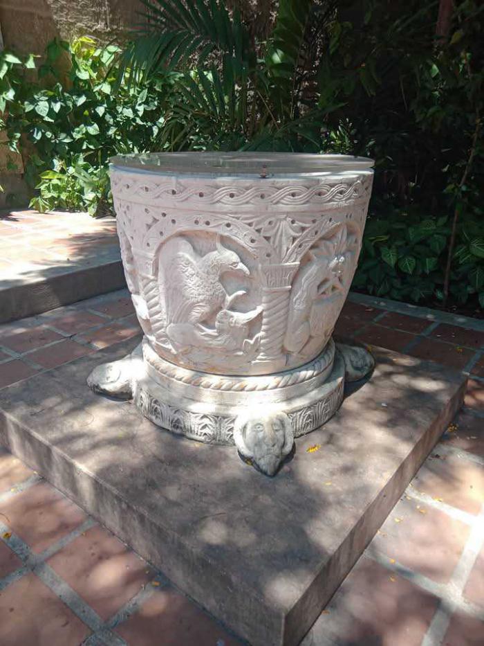 Entre plantas y esculturas conforman el ambiente místico y de paz que se respira en este precioso sitio, junto a la escultura de la Madre Teresa de Calcuta podemos encontrarnos con la Mesa del Silencio, y otras no menos importantes y de gran valor artístico y patrimonial.