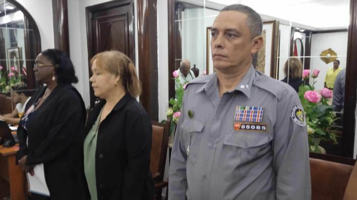 Integraron también la presidencia del acto solemne Yaimara Ángulo González, vicefiscal de la Fiscalía Provincial de La Habana; Maricelis Ricardo Vázquez, subdirectora provincial de Bufetes Colectivos; teniente coronel Omar Herrera Viñas, segundo jefe de la Policía Nacional Revolucionaria de La Habana.