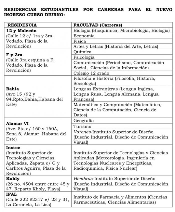 Las residencias estudiantiles abrirán sus puertas el miércoles 27 de agosto de 2025, para estudiantes de otras provincias. La asignación se realizará según la carrera.