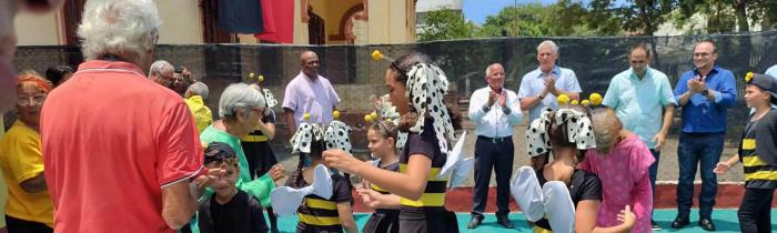 Y al ritmo de las interpretaciones de integrantes de La Colmenita y su baile, al que también se sumaron a muchos de los ancianos que ya tienen al SAF como su propio hogar, culminó la ceremonia de apertura, en la cual tomaron parte Liván Izquierdo Alonso y Yanet Hernánez Pérez, miembros del Comité Central del Partido y máximas autoridades política y gubernamental de la capital, respectivamente.