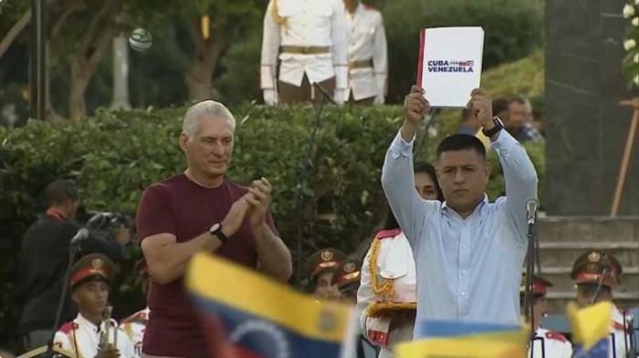 El acto se suma a los libros con las más de 4 millones de firmas recaudadas por los cubanos en apoyo al pueblo venezolano para reafirmar que Venezuela no está sola, que su lucha es la lucha de todo un continente.