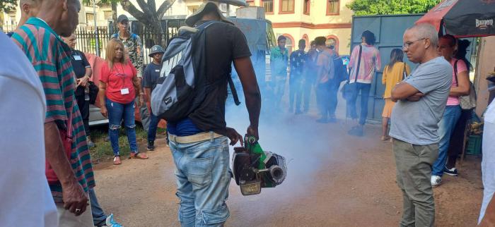 Otro de los lugares recorridos fue el Consejo Popular Rampa, donde el Primer Secretario del Partido en la ciudad intercambió con directivos de salud y trabajadores movilizados para la fumigación contra el vector.