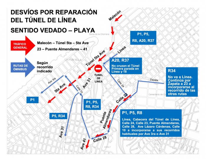 Como vías alternativas los conductores podrán utilizar: calle 23, avenida 41, 5ta Avenida y Malecón.