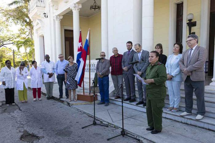 En el acto estuvieron los viceministros cubanos de Salud Pública y Educación, Reynol García y Alexander Manso, respectivamente, junto a funcionarios de la embajada rusa y directivos y trabajadores de las instituciones sanitarias beneficiadas con la donación.