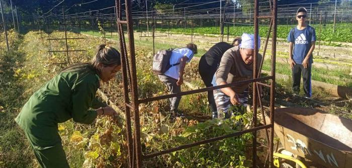 Allí se les pudo ver con el rostro de cara al surco, mientras sus manos se movían ágiles en el desmonte de una siembra de pepinos, la cual ya había concluido su etapa de cosecha. Una acción que dejó esos canteros listos para la siembra de otros vegetales. En total, según explicó Osbel Sierra Rodríguez, jefe de Producción de la UEB Primero de Mayo, se limpió media hectárea de tierra.