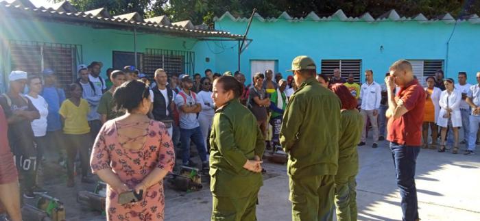Este lunes, en áreas del Policlinico Efrain Mayor, en el municipio de Cotorro, durante la preparación de las fuerzas destinadas a la fumigación intradomiciliaria en ese territorio, Liván Izquierdo Alonso primer secretario del Comité Provincial del Partido en La Habana y Yanet Hernández Pérez, gobernadora de la capital, insistieron en la importancia de la tarea que esas personas realizan.