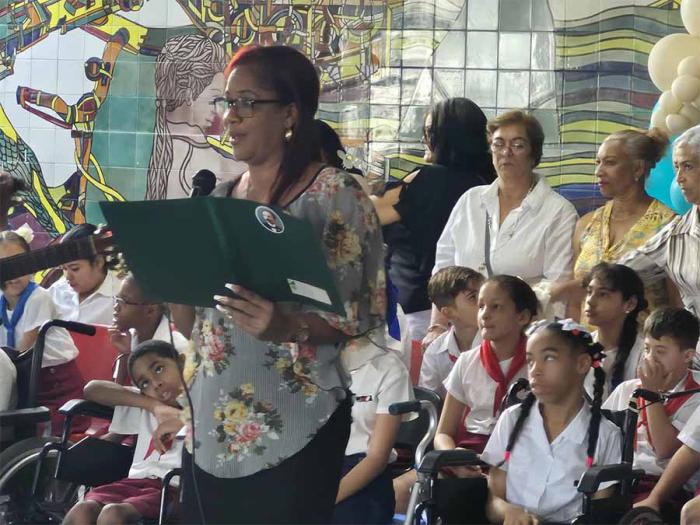 En ese espacio hemos logrado que nuestros niños y adolescentes se sientan plenos, en una escuela cada vez más humana y solidaria, que nos transmite la certeza de que la educación transforma a las personas para bien, expresó la directora del centro, Nayris Reyes Cleger, quien agradeció el apoyo de las familias y de las autoridades, desde el nivel nacional hasta el municipio de Boyeros, donde esta ubicada la escuela.