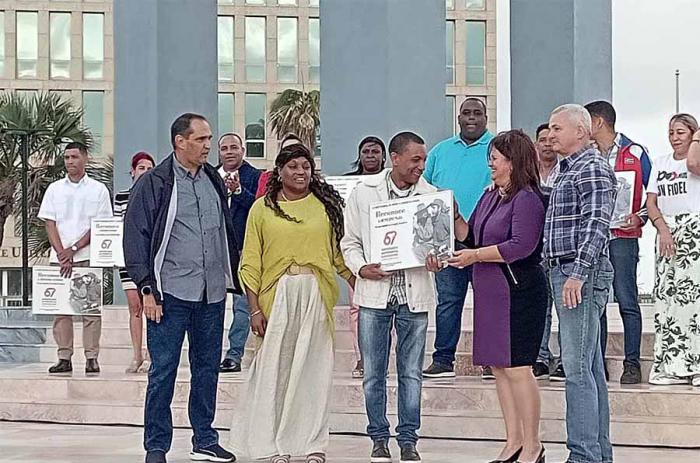 Como es habitual en estas conmemoraciones, se entregó del carnet de militantes del PCC a un grupo de compañeros y compañeras, por los méritos en su desempeño laboral, social y político.