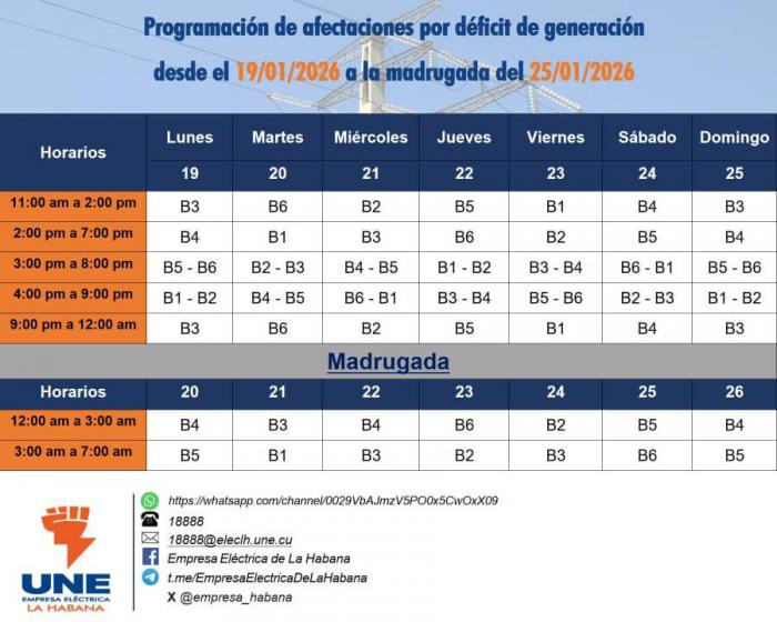 La Empresa Eléctrica de La Habana informa la programación de afectaciones por déficit de generación