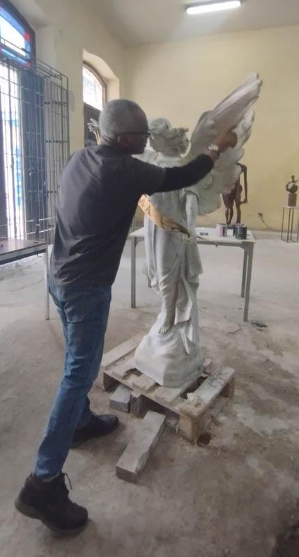 Giordano Sánchez, arquitecto y director de la Escuela Taller Gaspar Melchor de Jovellanos, de la Oficina del Historiador de la Ciudad de La Habana (OHCH), recuerda los tensos momentos del paso del huracán Melissa, el 29 de octubre pasado. Entre las imágenes de tanta destrucción en el oriente del país, vio el ángel caído y se dijo: “esto es de nosotros” y así se lo compartió a la directora de la OHCH, Perla Rosales.