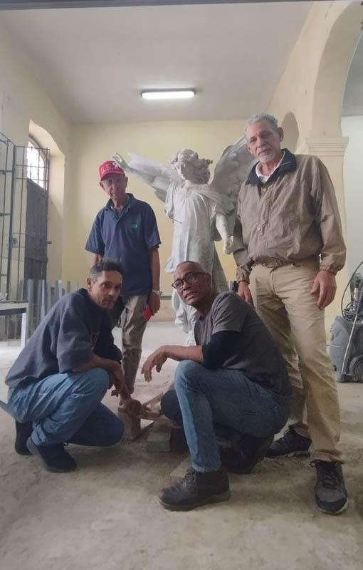 En el taller de Muralla 67, Duverger y su equipo integrado por escultores y maestro cantero: Andrés Carrillo, Carlos Cárdenas, Carlos Rojas, Alain Valdés, Octavio Aruca y Geraldo Ramos, lo recibieron.